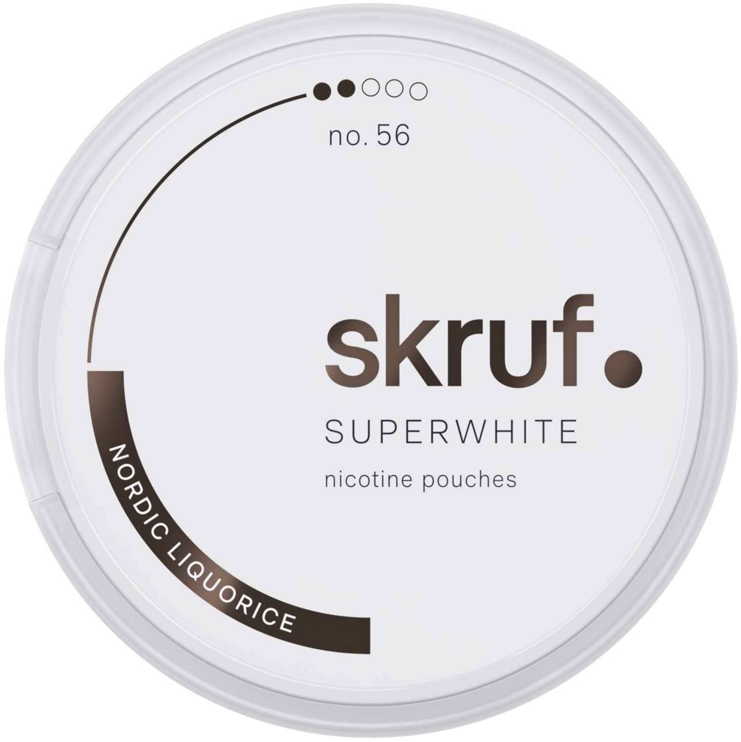 Skruf Superwhite Nordic No.56 delivers a smooth Scandinavian licorice profile in clean, tobacco-free slim pouches. With 8 mg/g and 4 mg per portion, it offers a mild and balanced experience suited for daily use. The all-white plant fibers ensure a clean release without staining and provide a long-lasting mix of subtle anise and salmiak notes. With up to 30 portions per 17.3g can, it’s an ideal choice for fans of classic Nordic licorice in a discreet, easy-to-enjoy format.