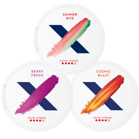 Explore X snus, the distinctive brand that delivers powerful nicotine experiences with bold flavor profiles and reliable quality. Known for its straightforward approach to high-strength formulations, X has built a solid reputation among experienced users seeking effective nicotine pouches without unnecessary complexity. Each can contains premium tobacco-free formulations crafted to provide serious satisfaction alongside well-developed flavor sensations. Whether you prefer classic mint intensity or adventurous fruit combinations, X offers a practical selection designed for consumers demanding strong nicotine delivery. Our comprehensive range includes multiple powerful variants to accommodate demanding tolerance levels. When you shop with us, you'll find authentic X products at competitive prices with free shipping on qualifying orders. Experience the potent reliability that makes X a smart choice for serious users. Browse our complete X collection today and enjoy rapid international delivery bringing strong nicotine pouches directly to your door.